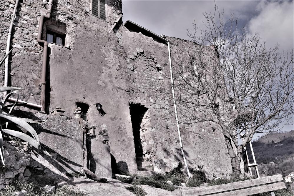 Gli edifici che definiscono via del Tufolino che prospettano, in parte, verso la Maremma, seguono il tracciato delle antiche mura medievali e la loro continuità è interrotta, in prossimità della Casa del Bellino, dalla porta denominata La Ciola – verosimilmente diminutivo di Porticciola – e dal rispettivo vicolo. Questo accesso, già documentato nella seconda metà del XVI secolo, consentiva agli abitanti di raggiungere agilmente l’area esterna al castello denominata I Massi, ovvero gli affioramenti rocciosi adiacenti al paese dove esistevano i ricoveri per gli animali e i terrazzamenti limitrofi; oltre la porta, l’accesso assai ripido e la vicina torre rompi-tratta – oggi abitazione privata – rappresentavano fattori in grado di scoraggiare qualsiasi attacco esterno (figg. 3-5).