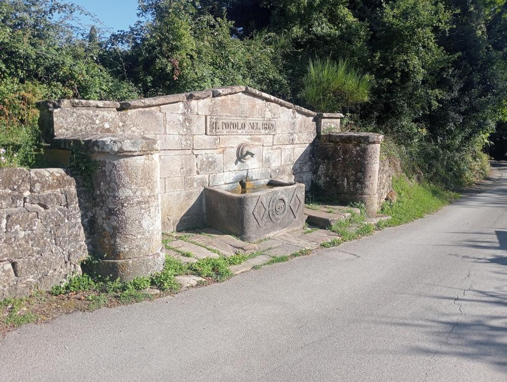 A poca distanza dal paese di Roccatederighi, lungo il tragitto stradale denominato Pereti e in adiacenza del ponte costruito sul Fosso Rigovilla, sussiste una fontana monumentale che, per la struttura architettonica e le dimensioni, è denominata comunemente dalla popolazione locale come Fonte del Fossato o Fontanone (figg. 1-2).