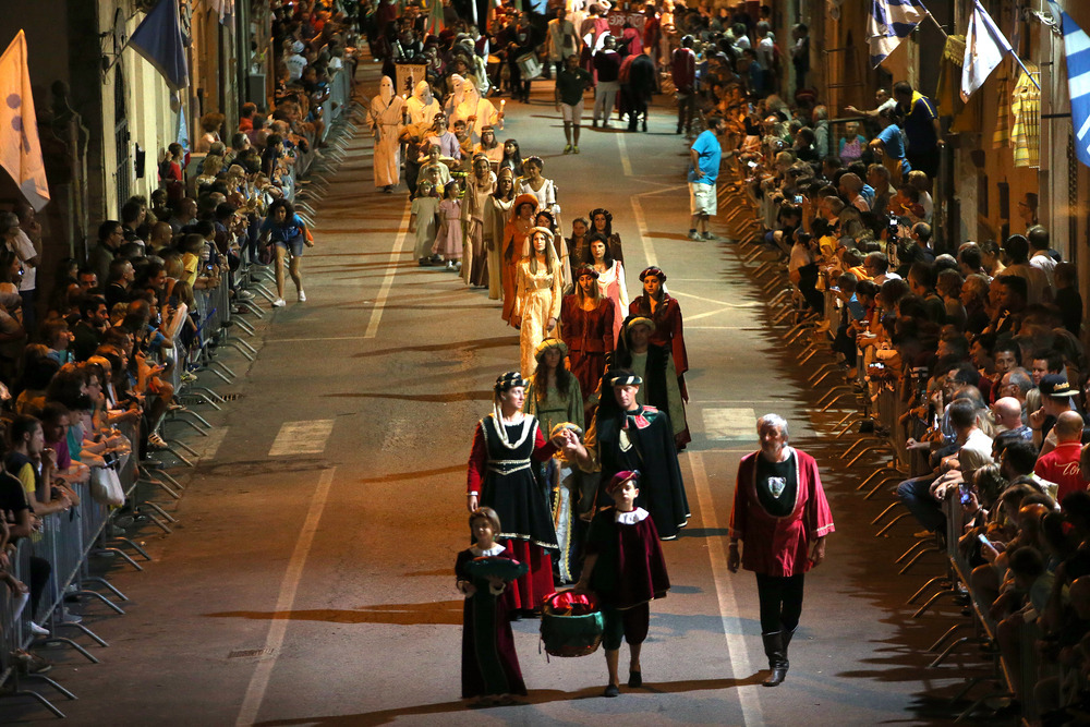 Il paese celebra così la sua storia millenaria riproponendo, in un clima di giocosa fratellanza, la leale contrapposizione tra le contrade del paese.